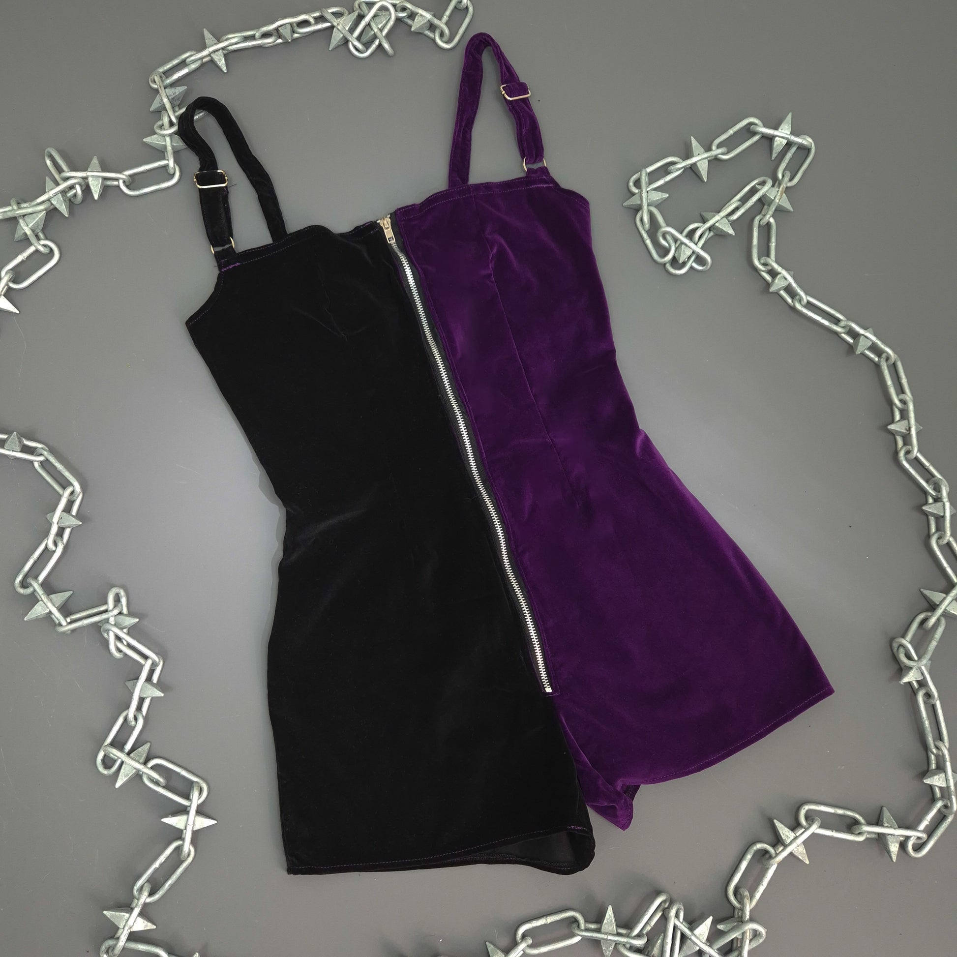 Black And Purple Velvet Playsuit