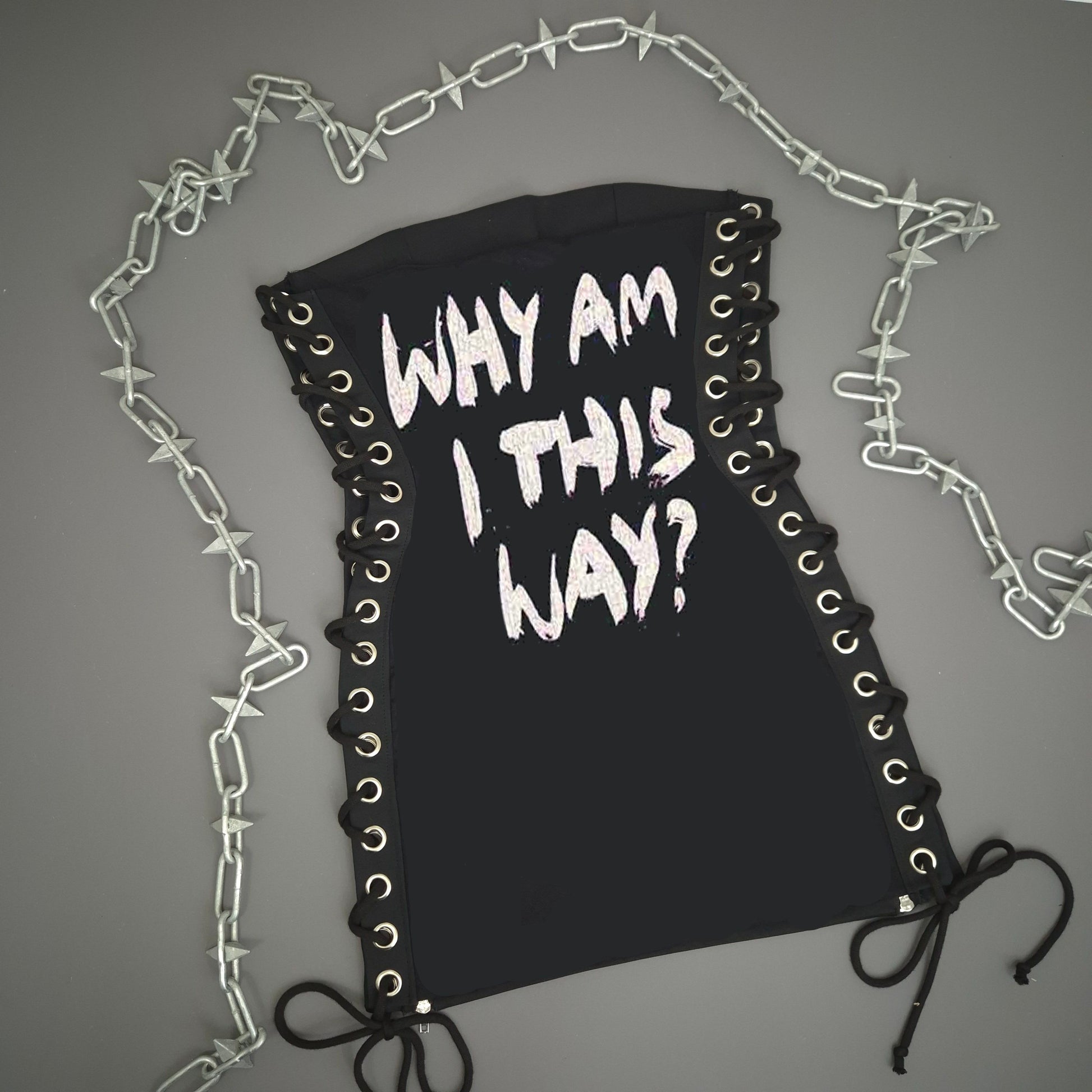 Handmade dress with corset style lacing along both sides and zip closures on the front.