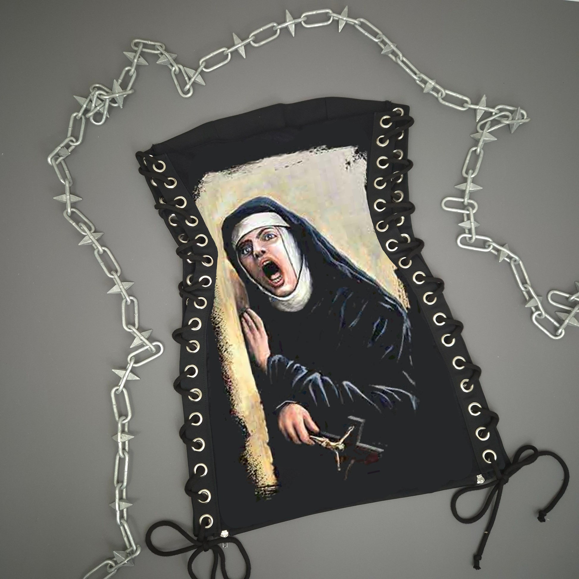 Handmade dress with corset style lacing along both sides and zip closures on the front.