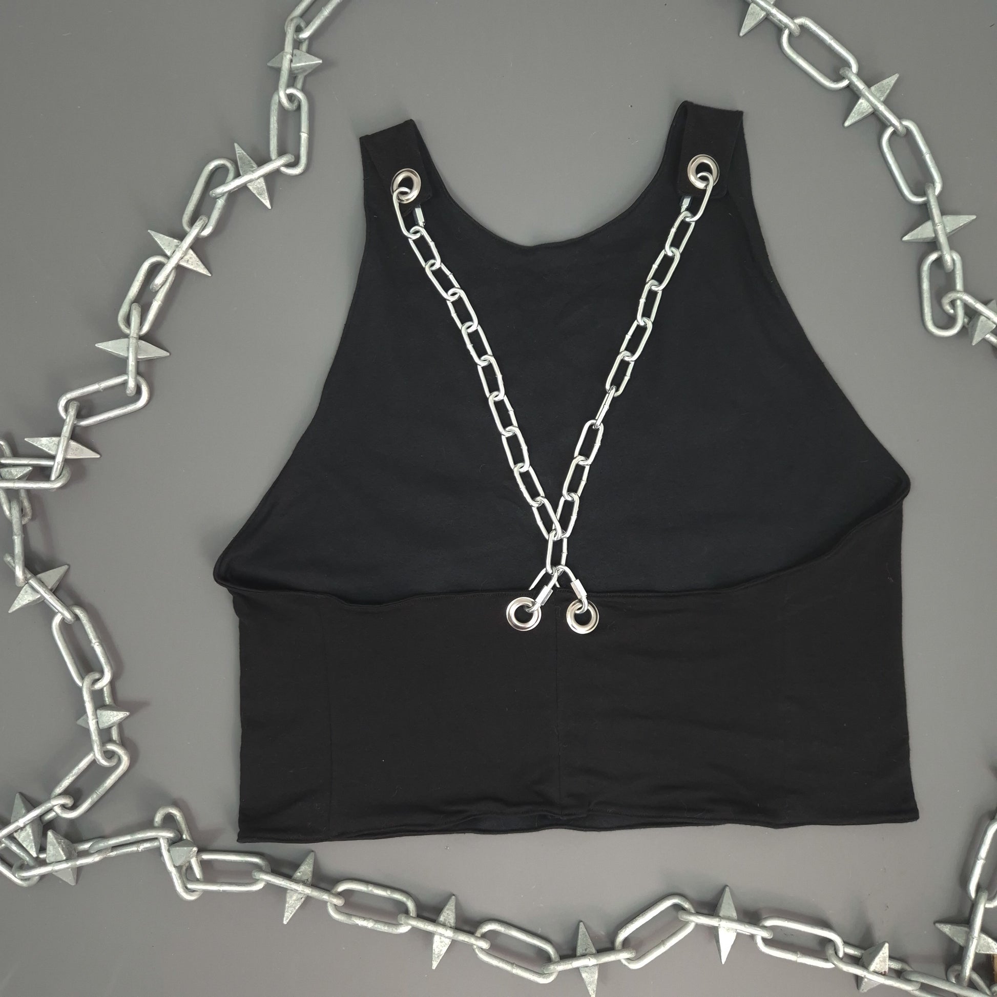 Handmade top with chain detail on the back.