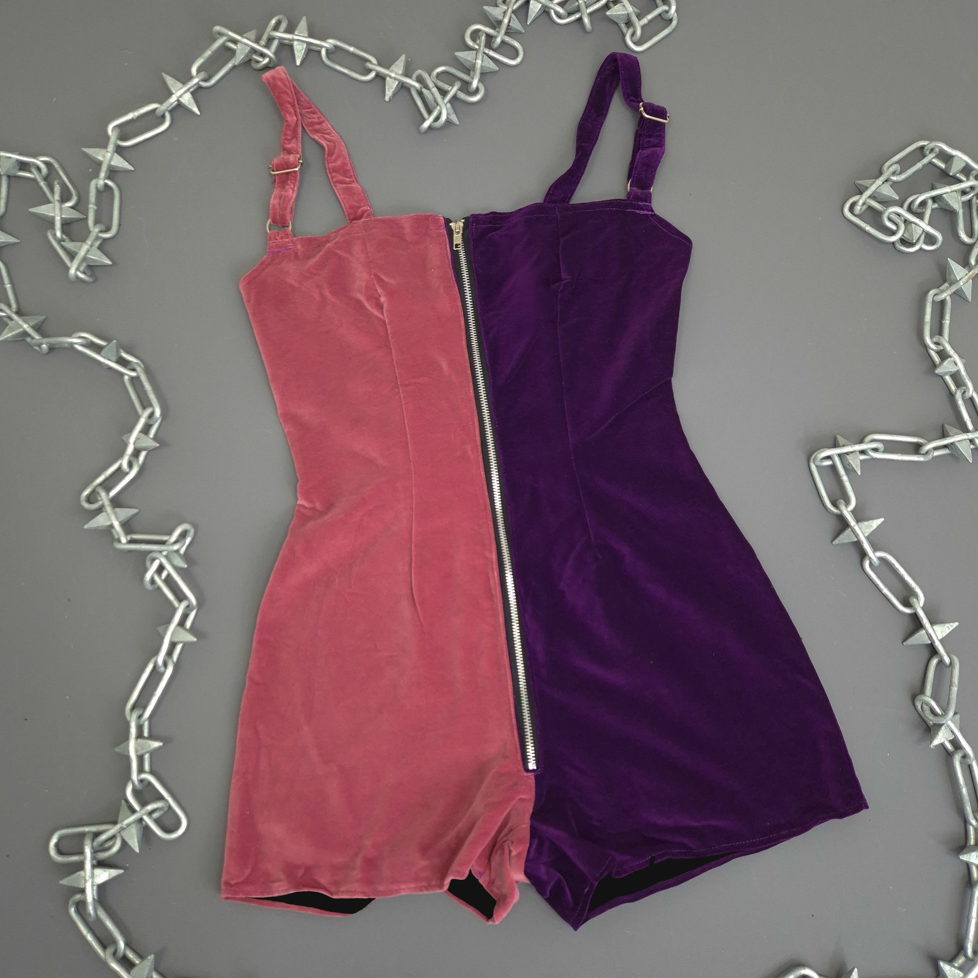 Pink And Purple Velvet Playsuit